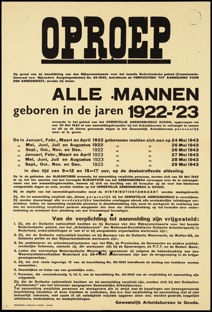 Op 28 februari 1941 vaardigde de Nederlandse Rijkscommissaris Seyss-Inquart een verordening uit die de tewerkstelling van dwangarbeiders voor de Duitse oorlogsindustrie definitief regelde.